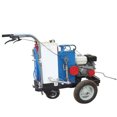 技术参数 ■ 结构特点 单泵单枪高压无气喷涂手推划线车。采用日本本田5.5马力,带减速、自动离合的汽油机为动力,压力稳定,标线清晰,操作灵活,实用、价廉物美。线宽随意调整,卸下喷枪可手持喷箭头及所需涂物。 ■ 适用范围 中小城市及宾馆、饭店、社会停车场、厂矿、企业的标线施工。 ■ 技术参数 工作压力:10-12Mpa 标线宽度:50-200mm 标线厚度:0.3-0.4mm 涂料粘度:70-80s 涂料粒度:<300u 划线速度:步行中速 线断控制:手控